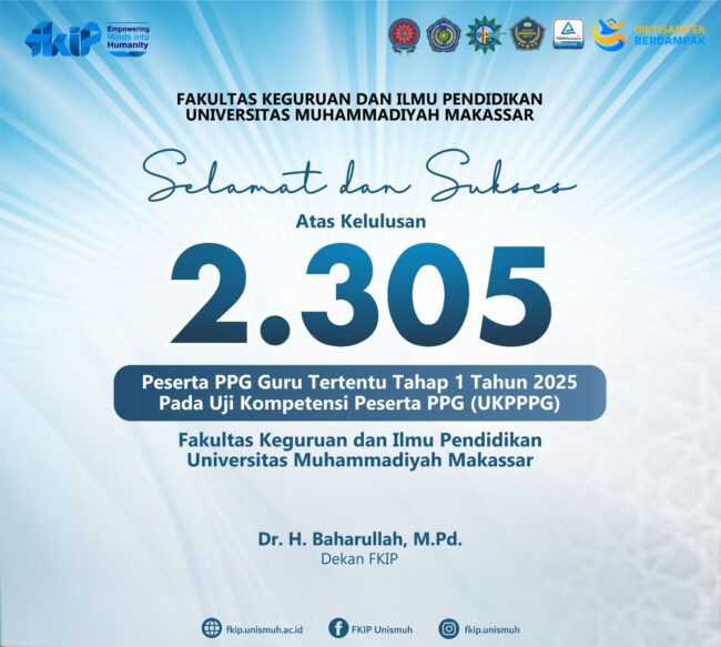 Makassar, 13 September 2025 – Kabar gembira datang dari Fakultas Keguruan dan Ilmu Pendidikan (FKIP) Universitas Muhammadiyah Makassar. Sebanyak 2.305 peserta Program Pendidikan Profesi Guru (PPG) kategori guru tertentu dinyatakan lulus pada Uji Kompetensi Mahasiswa PPG (UKMPPG) Tahap 1 Tahun 2025. Pengumuman resmi ini disampaikan oleh Panitia Nasional UKMPPG melalui laman resminya pada akhir pekan…