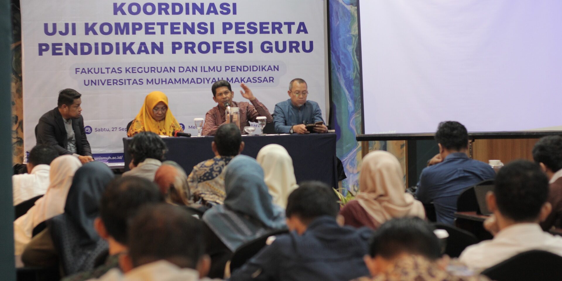 Kegiatan ini dihadiri oleh Dekan FKIP Unismuh Makassar, para Wakil Dekan, Kaprodi Program Studi PPG, serta para Kaprodi se-FKIP dan dosen yang terlibat dalam pelaksanaan program PPG.